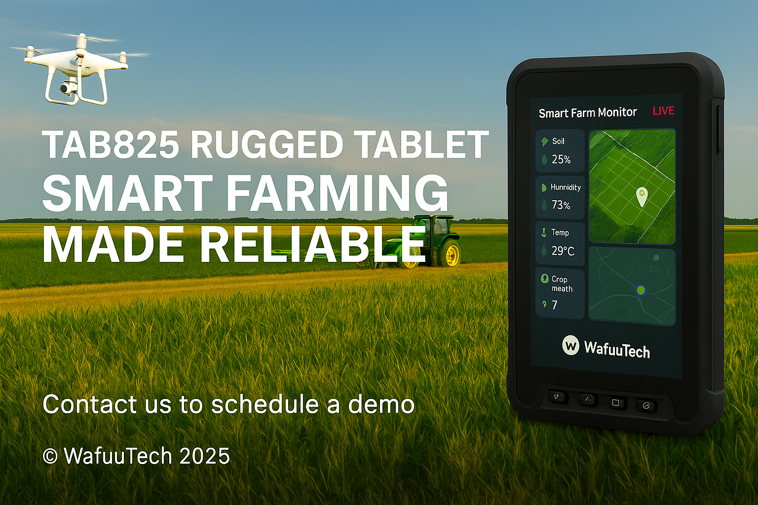 The WafuuTech TAB825 Rugged Tablet brings industrial-grade durability to modern agriculture. With Android 13, a sunlight-readable display, and all-day battery